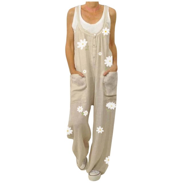 Women Summer Holiday Casual Sleeveless Jumpsuits Fashion Ladies Boho Floral Bodysuit Loose Long Pant Trousers Overalls for Women